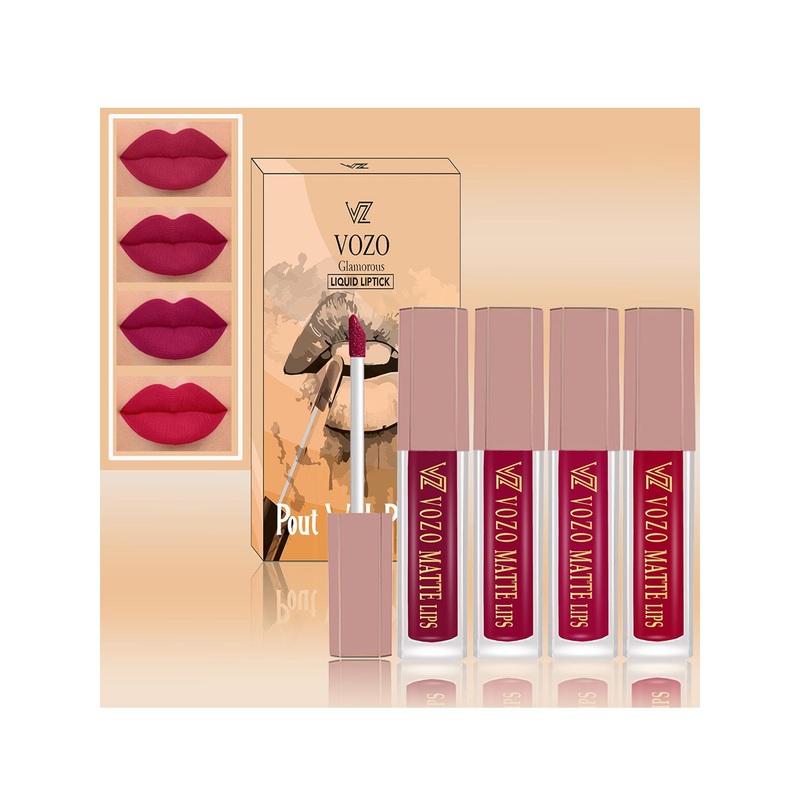 Set of 4 Soft & Comfortable liquid matte finish lipstick, 6 ml Each-Dark Magenta-101, Passion Pink-105, Magenta-106, Passion Magenta-204MATERIAL & CAREVOZO Matte Liquid Lipstick - Vibrant Color, VOZO Liquid Matte Lipstick - All-Day Wear.